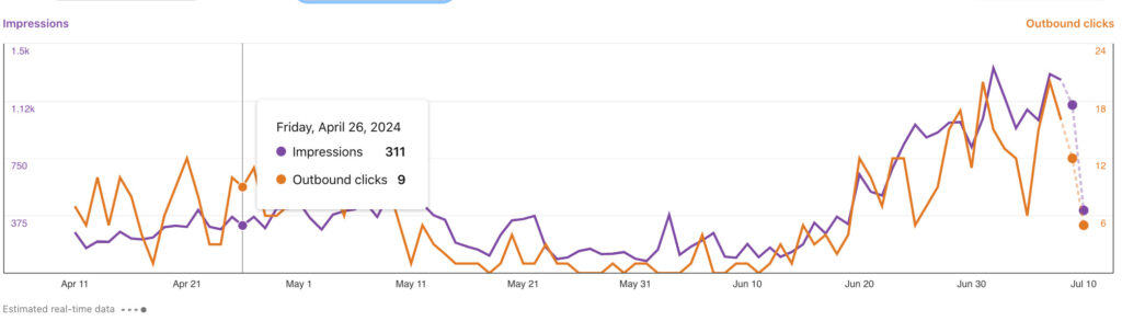 You can see in the screenshot below how important it is to pin regularly. When I started pinning again in April my traffic went up, but then it tanked in May because I stopped pinning.