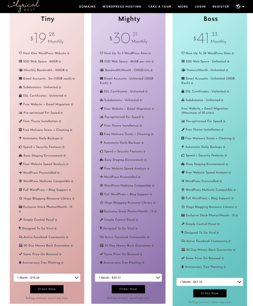 The other thing that I absolutely love, and that I knew was a good signal when I was looking to buy a new hosting service, was that Lyrical Host is completely transparent about their services. There are no hidden, extra, or unnecessary fees. And, you get to see all the services you’re getting before you buy.